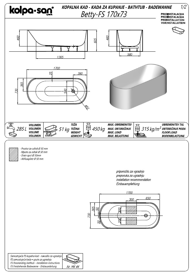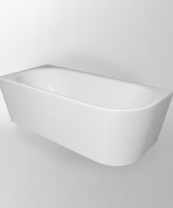 Manjša samostoječa ovalna kopalna kad s prelivno garnituro, ustvarjena z enostavnimi, nežno ukrivljenimi linijami za romantični dotik.