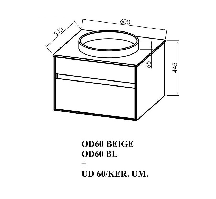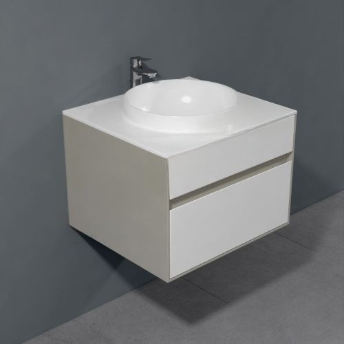 Kopalniška omarica z belo fronto in beige obodom s keramičnim okroglim umivalnikom