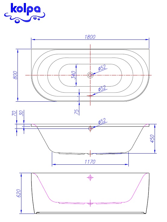 KOPALNA KAD SP 180 X 80 BELA 2.KL